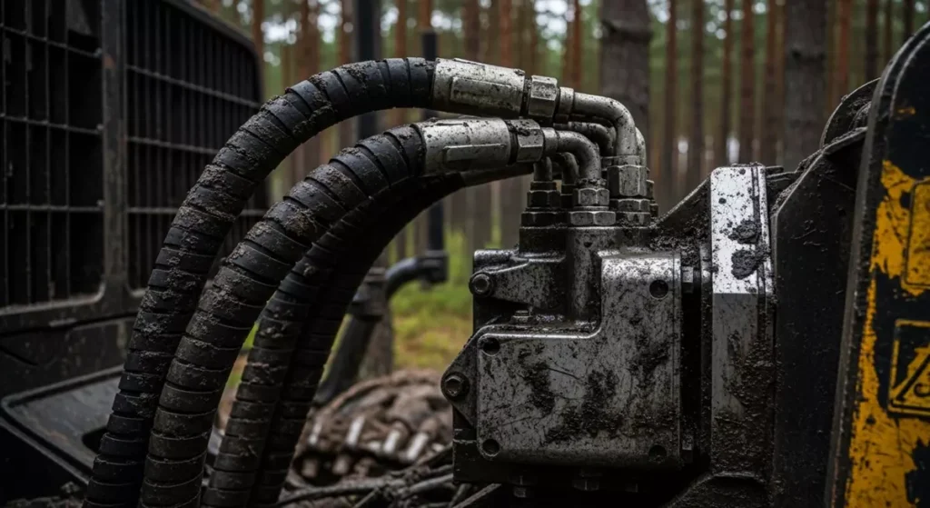 Załadowany po brzegi ośmiokołowy forwarder zakopuje się w grząskim bagnie. Silnik wyje, ryczy pod obciążeniem, a koła nie ciągną. W sprzęcie leśnym nie znajdziesz klasycznych skrzyń biegów z zębatkami. Rządzi hydrostatyka. Spadek ciśnienia na pompie jazdy lub zatarcie silników hydraulicznych w piastach całkowicie unieruchamia potężną maszynę. Brak płynności w sterowaniu jazdą to pierwszy dzwonek alarmowy.