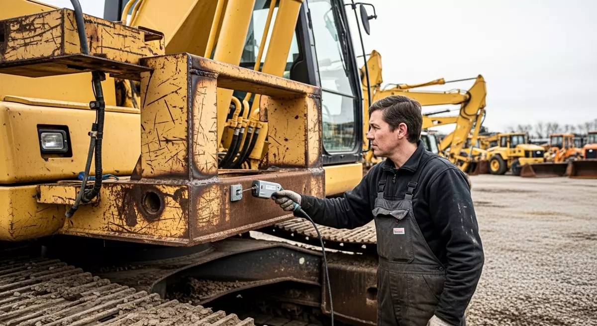 Pęknięte ramię koparki pospawane naprędce na handel i zamalowane pod kolor fabryczny to tykająca bomba. Gruba szpachla na przeciwwadze pęka przy pierwszym uderzeniu w twardy grunt. Opukujemy kluczowe węzły konstrukcyjne. Sprawdzamy spawy defektoskopem. Szukamy groźnych mikropęknięć w okolicach mocowania siłowników głównych i wieńca obrotu. Maszyna musi trzymać fabryczną sztywność konstrukcji, inaczej w ogóle nie trafia na nasz plac.